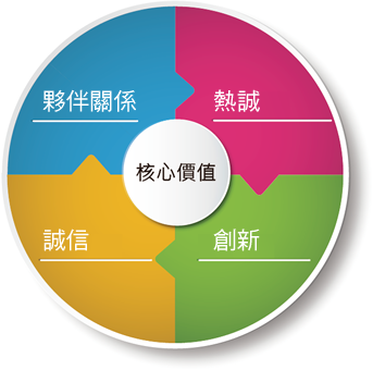 公司堅信相互信任與合作的模式可以為客戶、員工及供應商帶來不斷的茁壯成長,建立伙伴關係,共創美好未來。