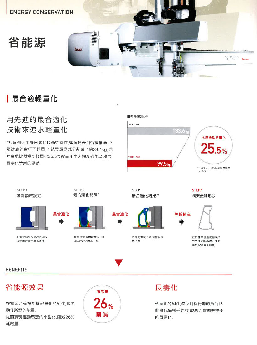 YC系列採取了這個最合適設計,而實現了輕量化。