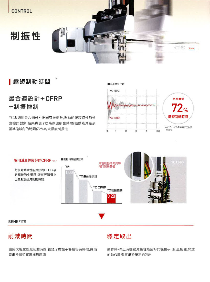 制振性,結果做到了削減26%的耗電量,縮短72%的整定時間的生產性提高。