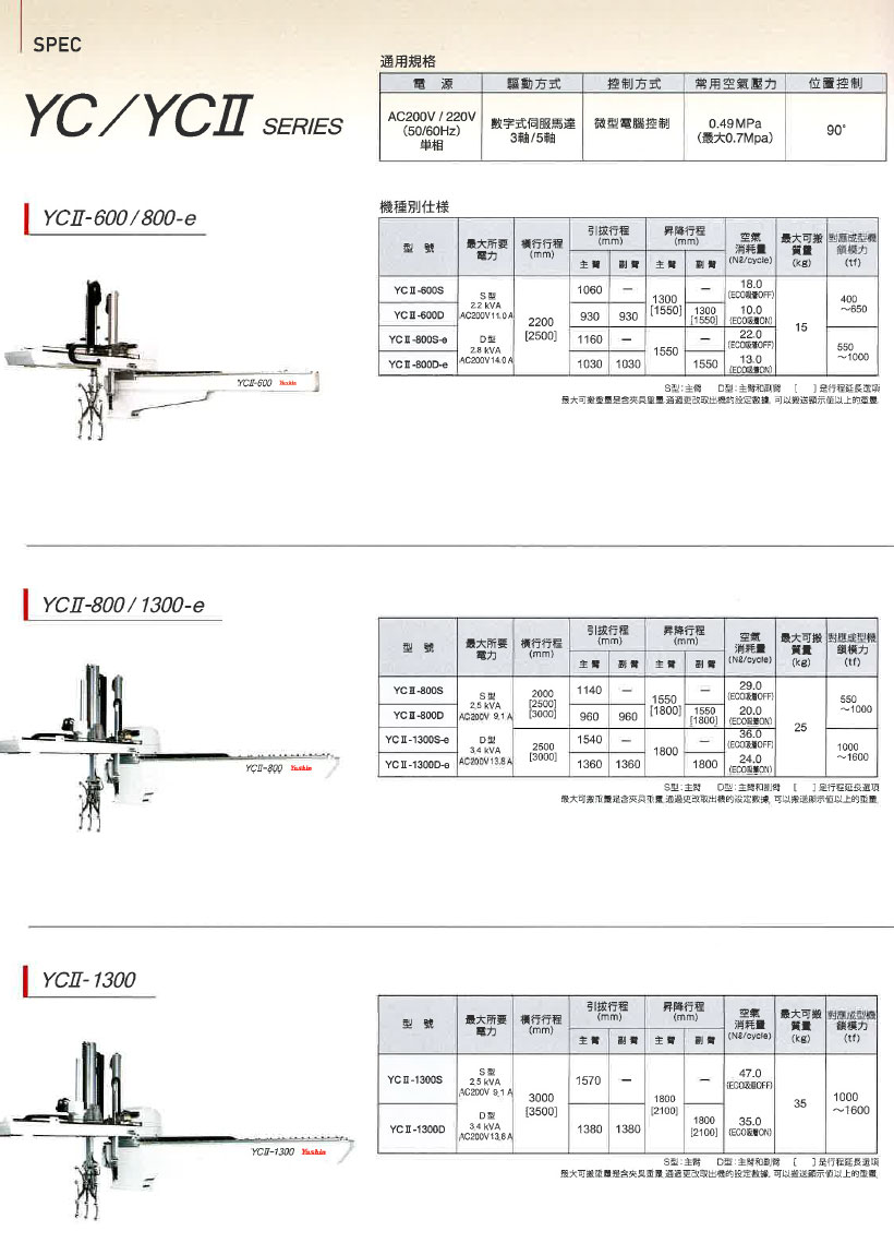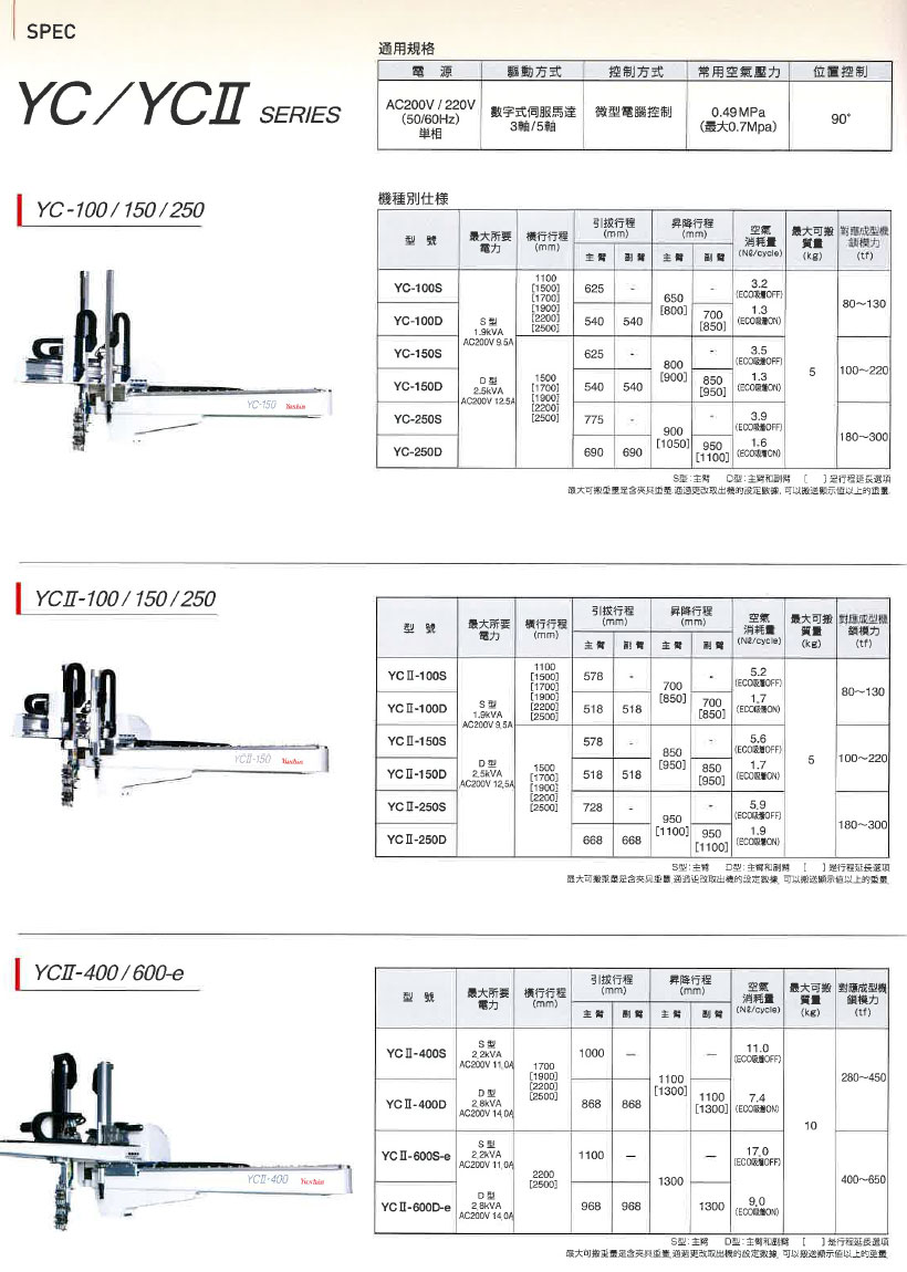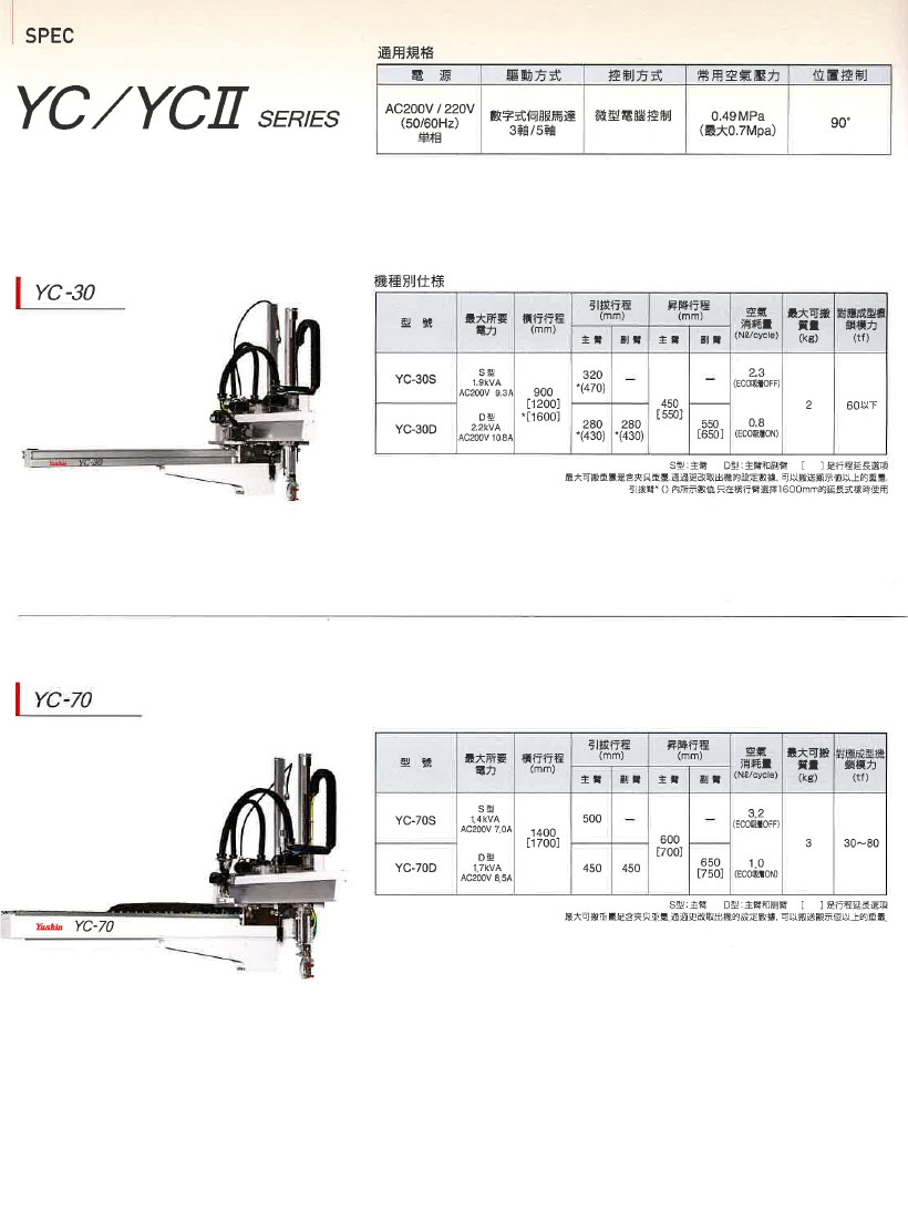 SC系列機械手 (型號 : SC Series) YC/YCII機械手系列 (型號 : YC/YC II Series)