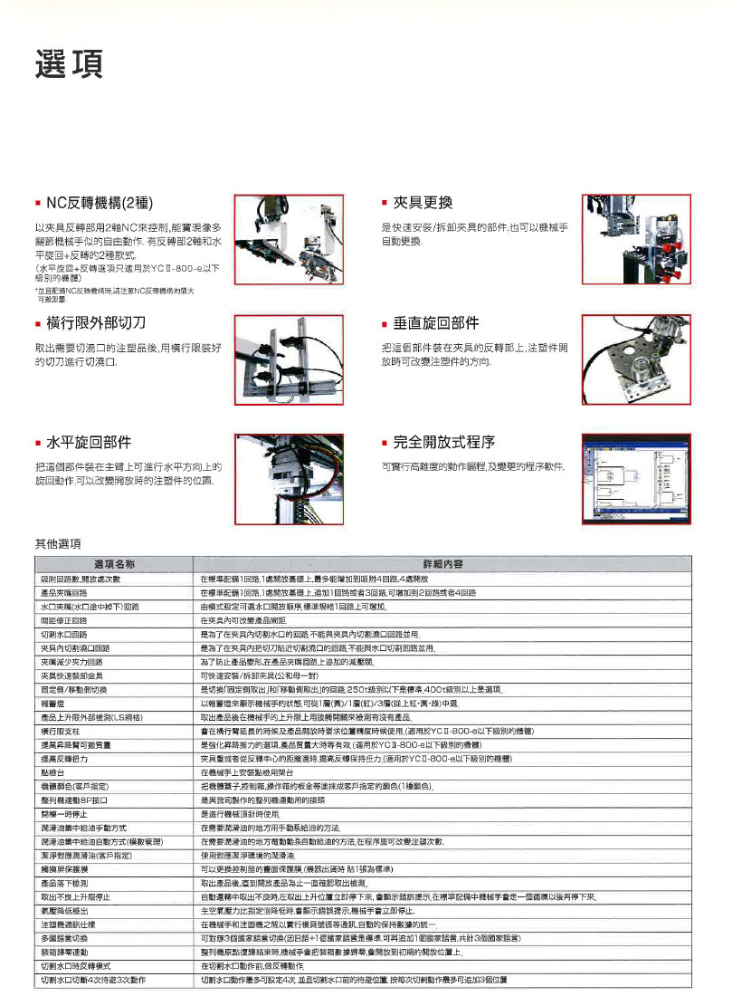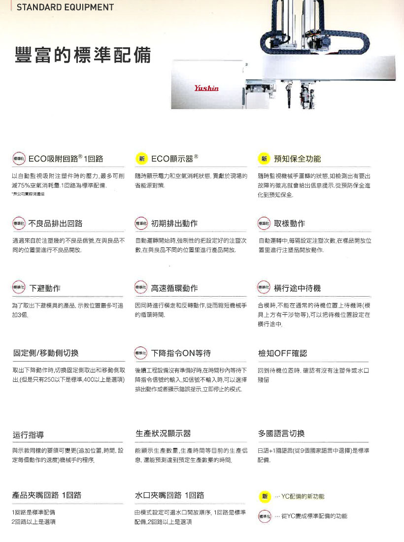 產品總覽 > 射出成型機與週邊 > Yushin > YC/YCII機械手系列